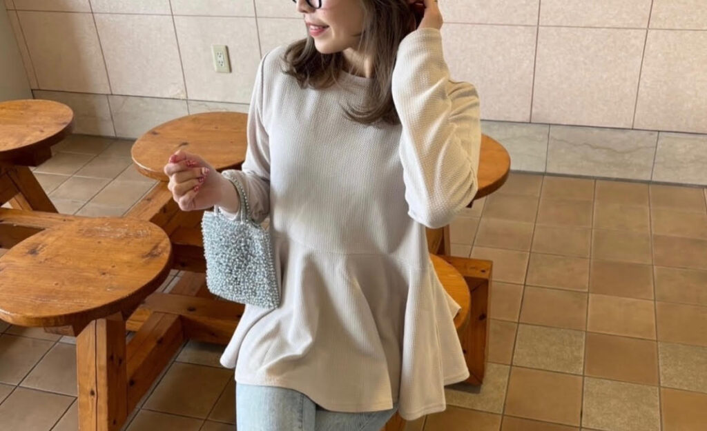 | Amazon | – | エンボス長袖裾フレアトップス |