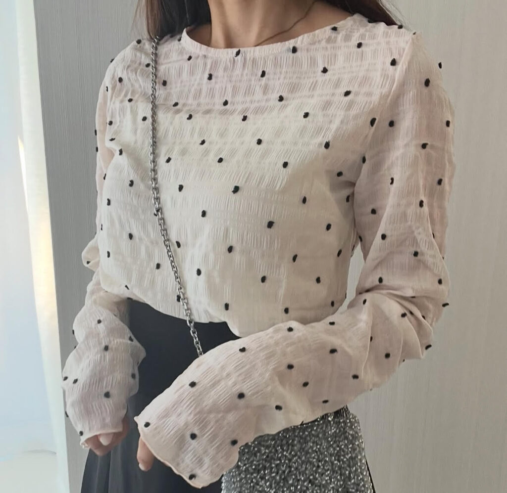 さりげない透け感が大人可愛いです。袖が長めなのも可愛い◎