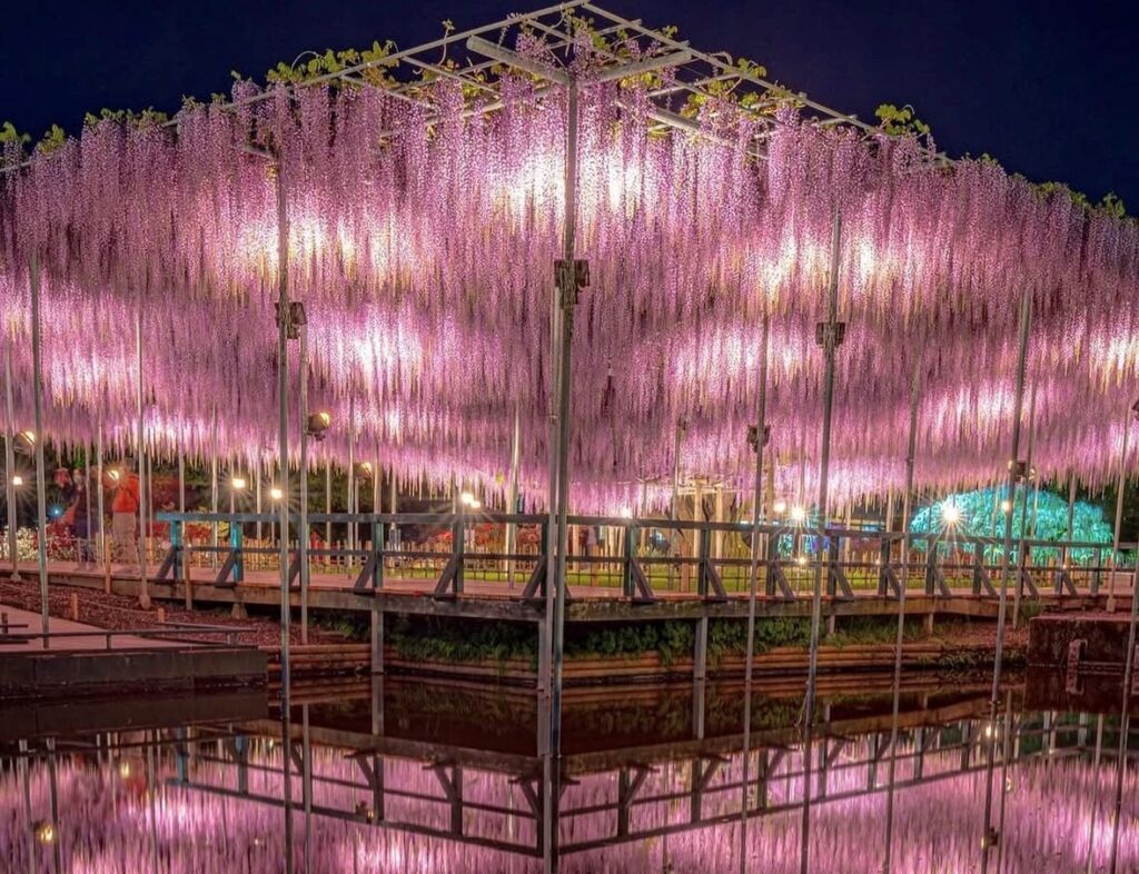幸せな時間を過ごせるんです。藤の花物語のライトアップを見に訪れてみませんか?ものすごい勢いで咲き乱れてまさに百花絢爛です。