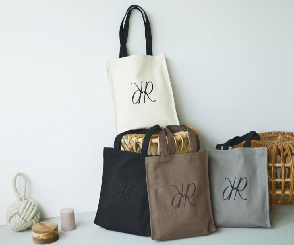 ぷっくり刺繍が可愛くて、マチもあるので沢山入る!「Rロゴキャンバストートバッグ」