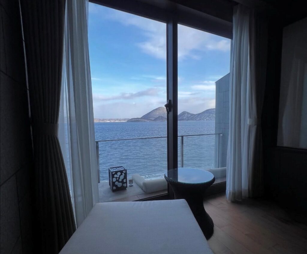 景色を眺めることができ満足します。スタッフも皆優しくて親切で、素敵なお宿です。お部屋にも露天風呂があります。