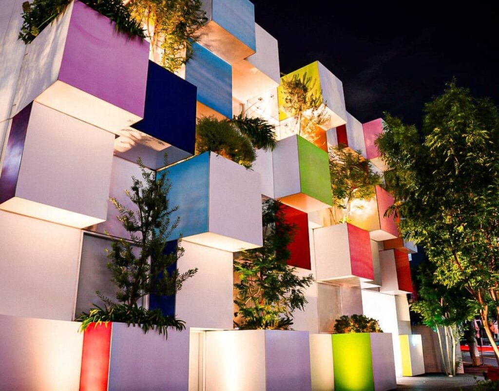 「1秒でも長く居たくなる信用金庫」をテーマに、デザインされた建物です。12個のCUBEには小さな空中庭園を設け、季節の花々や木々で彩っています。コンセプトは「24色のメロディー」です。