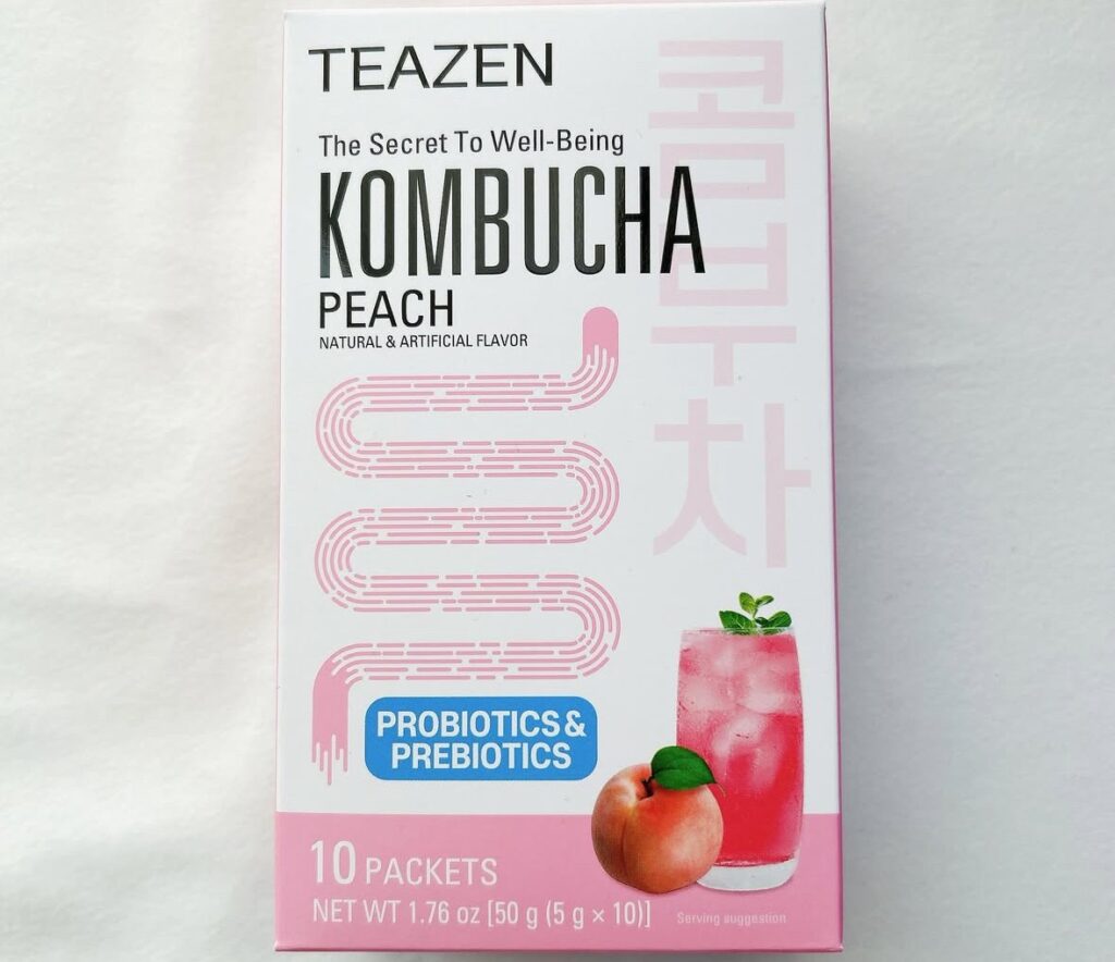 緑茶や紅茶を抽出した後、酵母菌と一緒に発酵させて作られた飲料!「ピーチコンブチャ」